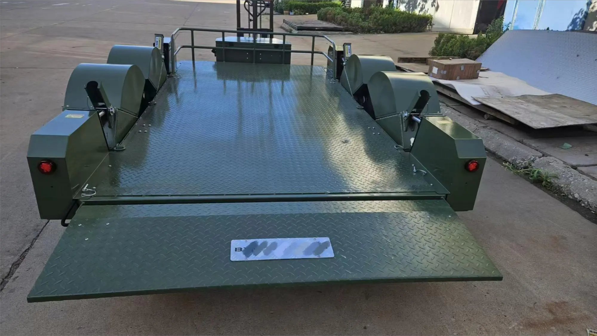 Цела платформа има дијамантске челичне плоче против клизања. Површина отпорна на хабање и неклизајућа може да издржи директно (котрљање) гусеничним машинама, ефикасно спречавајући клизање терета или возила током транспорта.